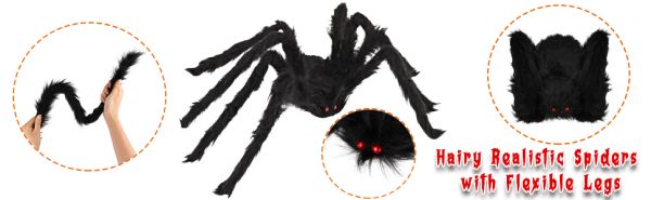 1.6 spider decorations look creepy and vivid, and they will definitely enhance the vibe of Halloween and give you a wonderful and unforgettable festival! 2.High-quality black fur provides you a comfortable sense of touching.