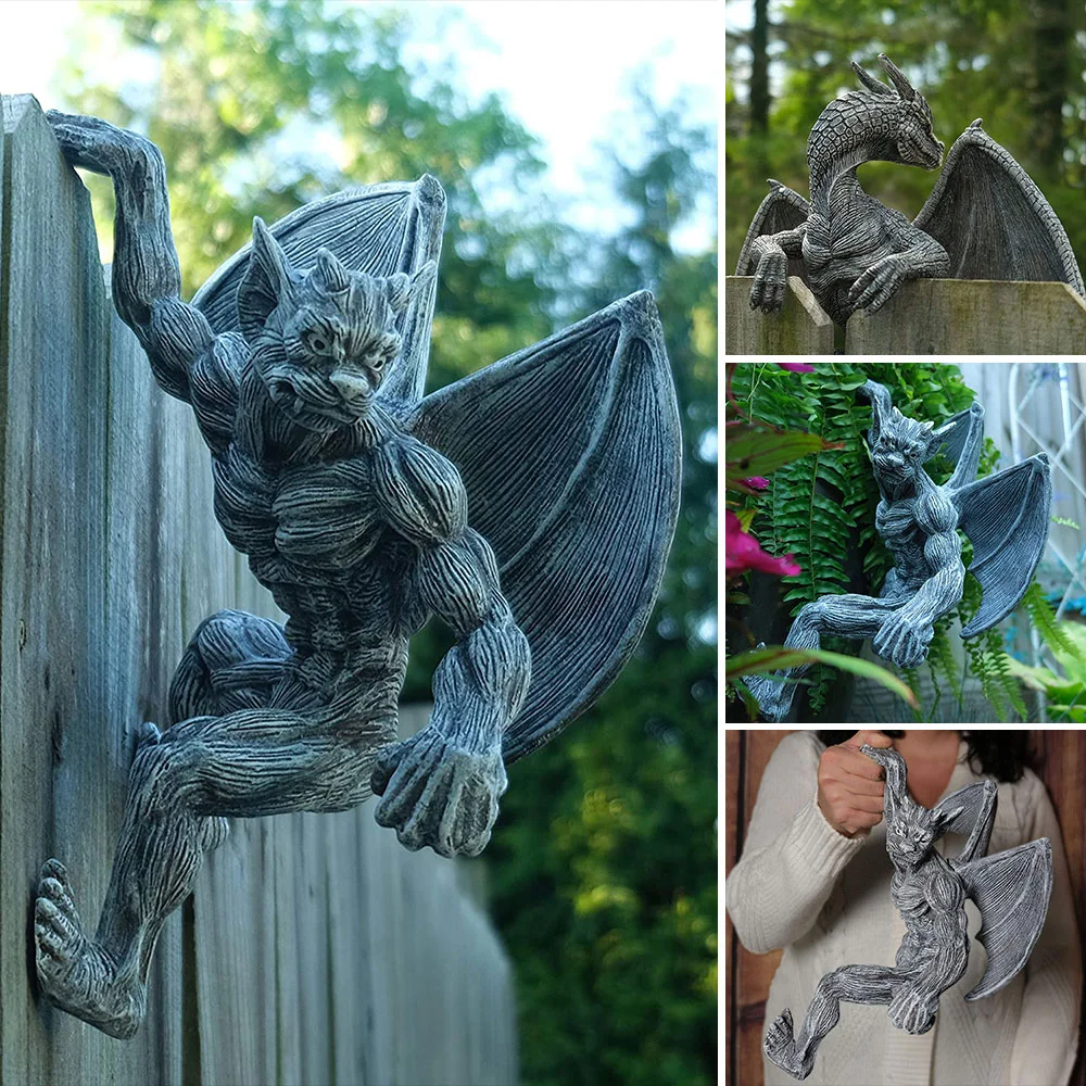 Add a touch of medieval Gothic architecture to your garden fence, porch railings, wall or patio with the gargoyle fence hanger . The menacing Gothic Gargoyle is designed to hang on a bar or windowsill so it climbs the wall.